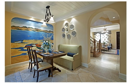 5、饭厅吊顶以图纸为准;灰镜甲供;(用木工板做基层,华玉石膏板贴面)